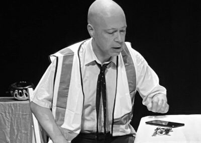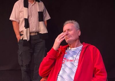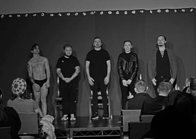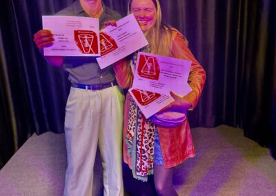 Sam left in 2019, and Mark Kyle Cooper took over as Co-producer with Steff Hudson. At that time, we also welcomed the amazing Dan Scott as the official Fringe Host, comparing our fundraising 24 Hour Playfest and The Fringe Awards. In 2022, we were pleased to announce the legendary John Gorman as our patron and in 2023, added Dan Cullinan (coordinator of Poetry on the Fringe) as associate producer, and Kiefer Wesley Williams and Harry Scot as assistant producers. Finally, in 2025, we added Elaine Stewart to complete our team.